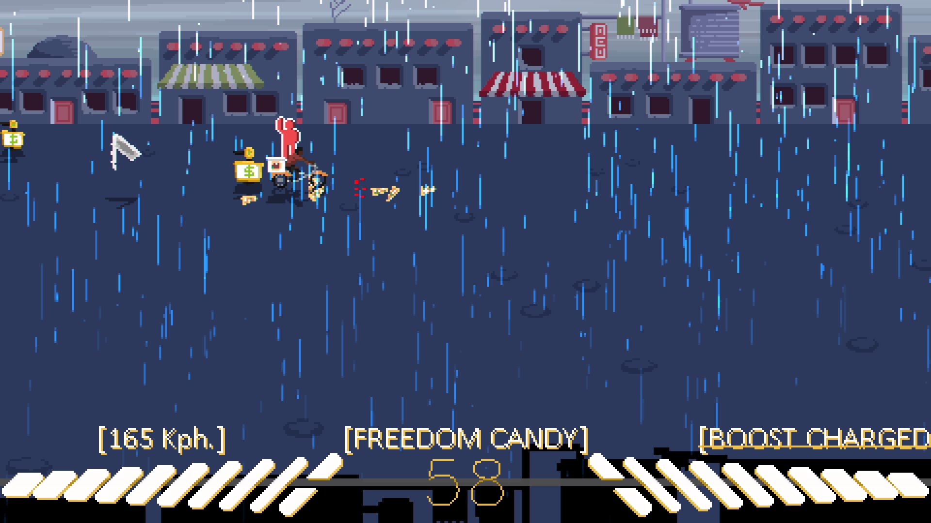 As frenéticas corridas que realizamos para ganhar dinheiro suficiente para o bilhete, são a mecânica principal da jogabilidade, e, igualmente a principal fonte monetária, juntamente com a venda de power cells (que também serve para modificar a nossa hoverbike, tal como peças que podem ser adquiridas). Estas corridas são relativamente simples e divertidas. Têm um limite de munições – consoante a vossa arma de escolha – que podem recuperar com veículos ou caixas espalhadas pelas pistas (também podem atingir o vosso oponente para o estagnar). O vosso boost, também limitado, regenera automaticamente, e, pode ser preenchido ao destruírem os “terrorists” em campo. Elementos como a fome afectam a regeneração do boost e os danos na hoverbike influenciam o máximo de boost da mesma. Assim, somos obrigados a harmonizar a nossa velocidade enquanto rasgamos pelas pistas e fugimos dos obstáculos, enquanto destruímos os “terrorists”, até alcançarmos a meta final.
