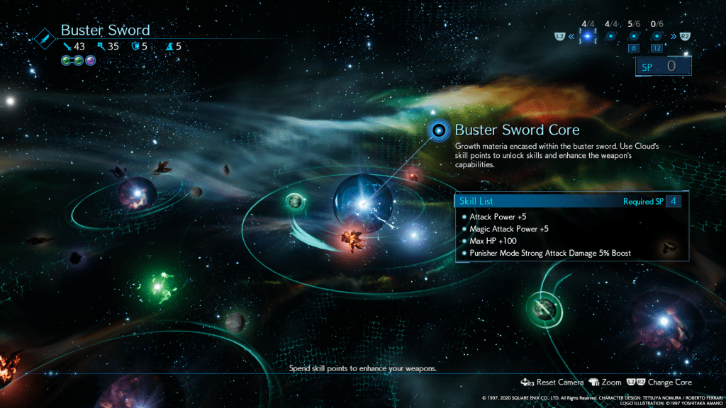 Passando agora ao gameplay. Final Fantasy VII Remake larga o combate por turnos do original pelo combate em tempo real com um sistema ATB. Resumidamente, enquanto combatem, as barras de ATB vão enchendo, ao ter uma barra cheia, podem utilizar uma habilidade, item ou spell em combate. Como RPG é de esperar haver níveis, equipamento e armas diferentes. Cada arma traz uma habilidade única, mas se maximizarem a sua proficiência, podem utilizar essa habilidade com qualquer outra arma, isto, em conjunto com o sistema de melhoria de armas (podem usar pontos para melhorar os stats ou adicionar passivas às vossas armas), faz com que nenhuma delas se torne irrelevante, cada arma tem as suas forças e fraquezas e cabe-vos decidir qual mais se adapta ao vosso estilo de jogo. No meu caso, dependi bastante da Buster Sword e a Hardedge porque gostava de usar algo mais equilibrado ou focado em ataque com o Cloud; com o Barret, utilizava as armas com melhor defesa, e usava a Aerith como suporte; a Tifa era a maior hard hitter da minha party. A materia, itens especiais para equipar às armas, oferecem spells, habilidades, passivas e outros tipos de melhorias. A variedade de materia é bem vinda e há uma certa profundidade na sua sinergia. Quando melhorava as minhas armas gostava de sempre de desbloquear mais espaços para a materia só para ter mais opções em combate e explorar o que poderia fazer com elas.