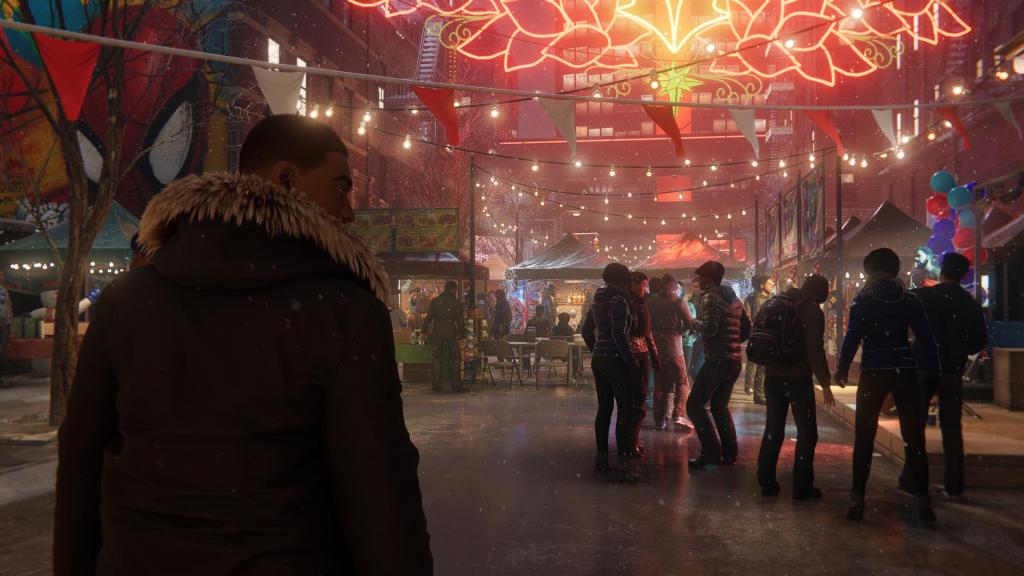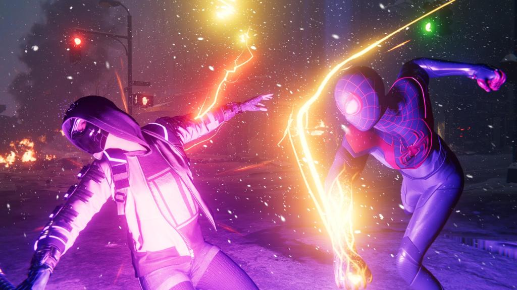 Nova Iorque continua praticamente igual, sendo o grande foco deste jogo Harlem e o bairro de Miles. Apesar disso, baloiçar nas teias pela cidade continua a ser o ponto mais forte destes jogos, e agora está ainda mais divertido pois os truques que podiam ser feitos durante as quedas estão ainda mais variados e fáceis de executar que nunca. Algo que também contribuiu ao divertimento de todo este sistema foi o Dualsense, com a sua resistência dos gatilhos à medida que baloiçamos pela cidade, a implementação é algo suave em comparação a outros jogos, mas ainda assim contribui à imersão geral. Além da resistência, o Haptic Feedback do comando dá ao poder de Bioeletricidade de Miles um “peso” e impacto adicionais que o tornam bastante satisfatório. O Dualsense é um comando incrível e mal posso esperar para ver o que irá ser feito no futuro com ele.