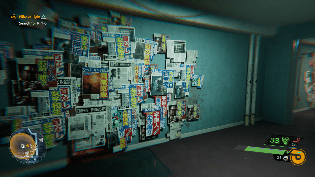 Durante todo este tempo houve uma constante: sempre que ia às missões de história, o jogo melhorava um bom bocado. Nunca cheguei a pensar “isto é genial”: o combate é só competente, a história é cliché e muitas das coisas mais interessantes que podemos descobrir (como folclore do Japão, ou casos antigos de outras personagens do jogo) estão presas ao open world e não às missões obrigatórias. Mas estava a divertir-me, em boa parte por causa das coisas interessantes que fazem com os cenários! No seu melhor, Ghostwire: Tokyo mostra-nos um mundo que está a ser atacado e moldado por seres do Além, que conseguem manipular o espaço à volta deles, distorcer a realidade e até pregar-nos um daqueles senhores sustos. No seu pior, que é muito, muito comum, deixa-nos a encher chouriço numa cidade que precisava de ser muito melhor trabalhada.