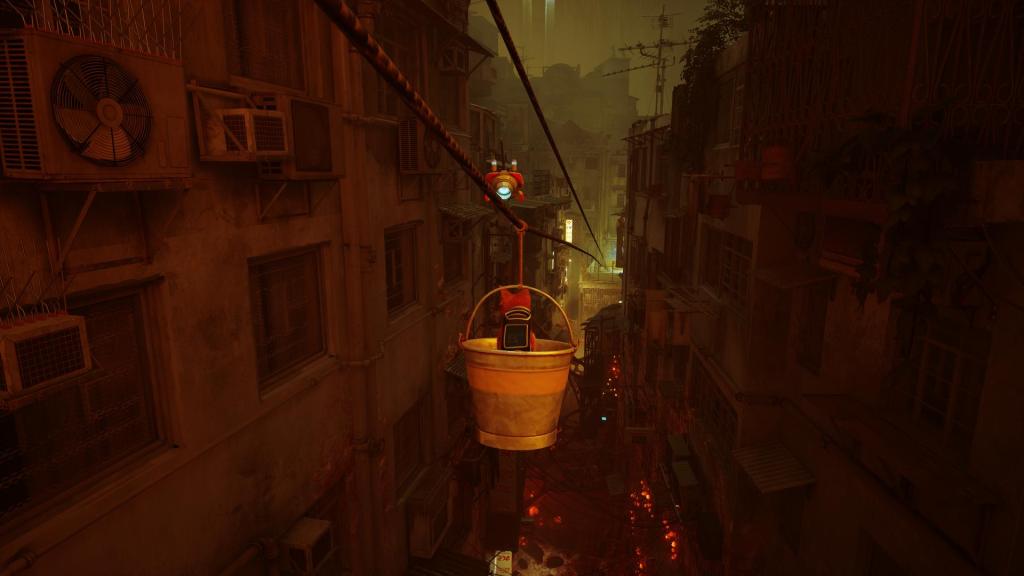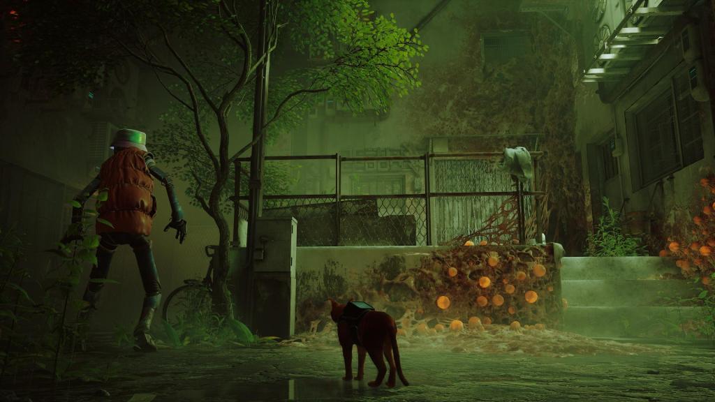 Ao nível da jogabilidade, “Stray” consiste num jogo de aventura em 3ª pessoa, sendo apesar de relativamente linear, composto por algumas áreas mais abertas que podemos explorar e não só conhecer mais sobre o mundo como também encontrar dezenas de colecionáveis, algo que no geral é bastante satisfatório, no entanto as secções de plataformas são inconsistentes, pois o gato não consegue saltar livremente, dependendo que o botão apareça no ecrã, algo que não é muito fiável em sequências mais rápidas onde precisamos de rapidamente mudar de direção ou altura da plataforma, o que pode levar a alguma frustração nesse aspeto, especialmente quando somos perseguidos pela praga em que um pequeno erro pode levar à nossa morte.