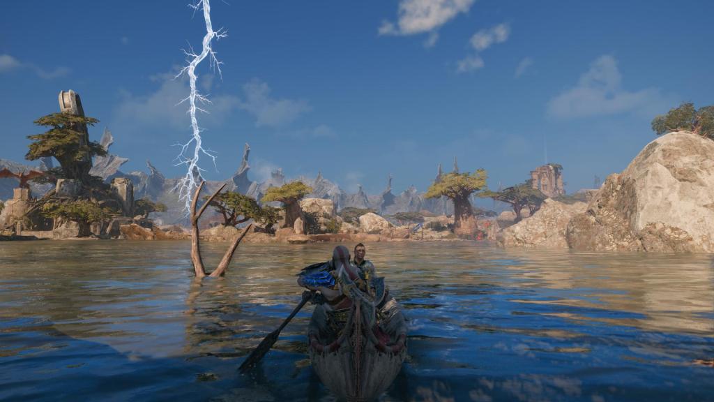 Ao nível da estrutura, o jogo continua a possuir um mundo semi-aberto, neste caso quase 9, cada reino tem tamanhos distintos mas quase todos têm algo que fazer e exploração é algo que não vai faltar, sendo preciso por vezes voltar mais tarde com novas habilidades, fazendo lembrar um “Metroidvania” típico, algo que é sempre agradável e dá sensação de progressão palpável. Como o anterior o que não faltam são colecionáveis como Corvos de Odin, artefactos, pergaminhos, entre outros, mas o grande destaque desta vez são as missões secundárias, que são sensacionais, não sendo apenas missões genéricas de ir de x para y ou apanhar simplesmente itens e acabar sem grande impacto, praticamente todas as missões secundárias adicionam bastante ao mundo e personagens neste jogo, mesmo as genéricas, sendo algumas mesmo inesquecíveis e se me perguntassem melhores que algumas missões principais de tão boas e impressionantes são em dimensão e importância geral, tanto que o verdadeiro final do jogo de certa forma é uma missão secundária que recomendo com todas as forças a toda a gente, sinto que é obrigatória para desfrutar o máximo deste título.