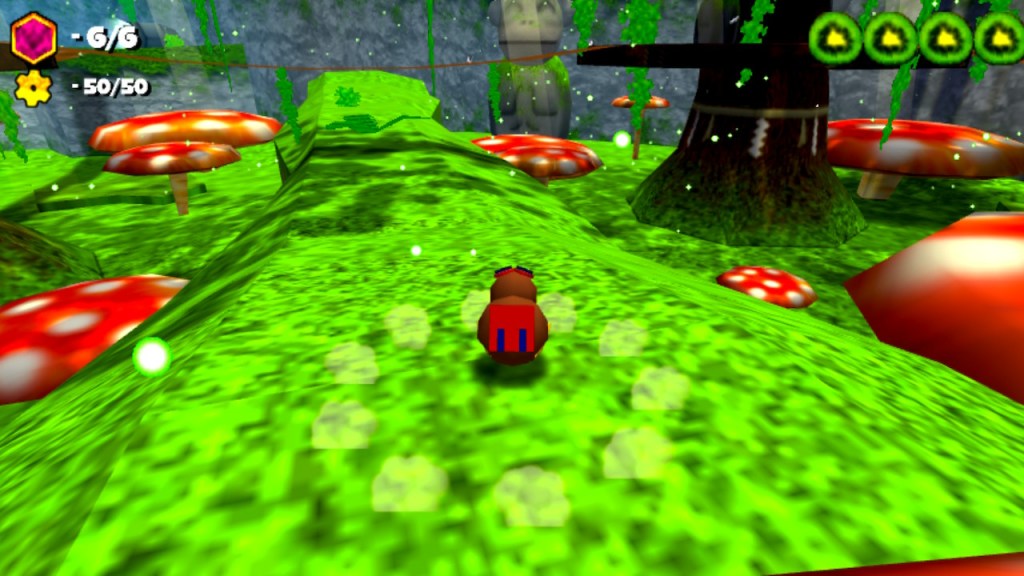 Visualmente, estamos perante um autêntico jogo de Nintendo 64 em muitos aspetos, desde do aspeto “low poly” à forma como as texturas são renderizadas, toda a sensação de um jogo dessa era está aqui presente embora claro com “widescreen” e a 1080p/60fps, resultando numa boa hibridização da nostalgia visual com a tecnologia moderna, resultando num aspeto bastante agradável, sendo cada mundo distinto nesse quesito.