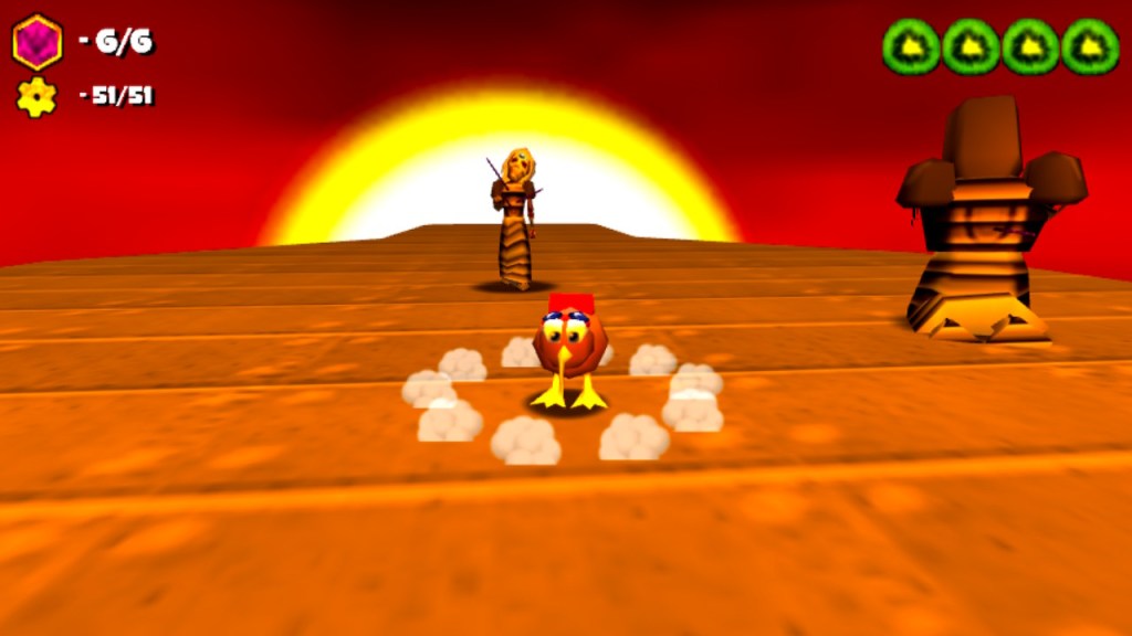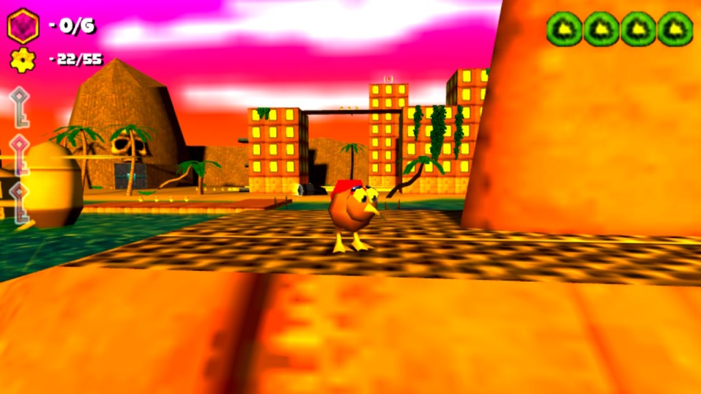 Ao nível da jogabilidade, “Super Kiwi 64” é um “Collect-a-thon” puro e duro, tendo cada nível 6 “Power Stones” para colecionar, havendo um total de 50 para colecionar, e no geral cada nível é satisfatório de se completar totalmente, demorando cada um cerca de 5-10 minutos para o fazer, por isso o jogo acaba por ter uma duração de cerca de 1 hora, o que tendo em conta o seu preço não me importei muito mas é algo a ter em conta.