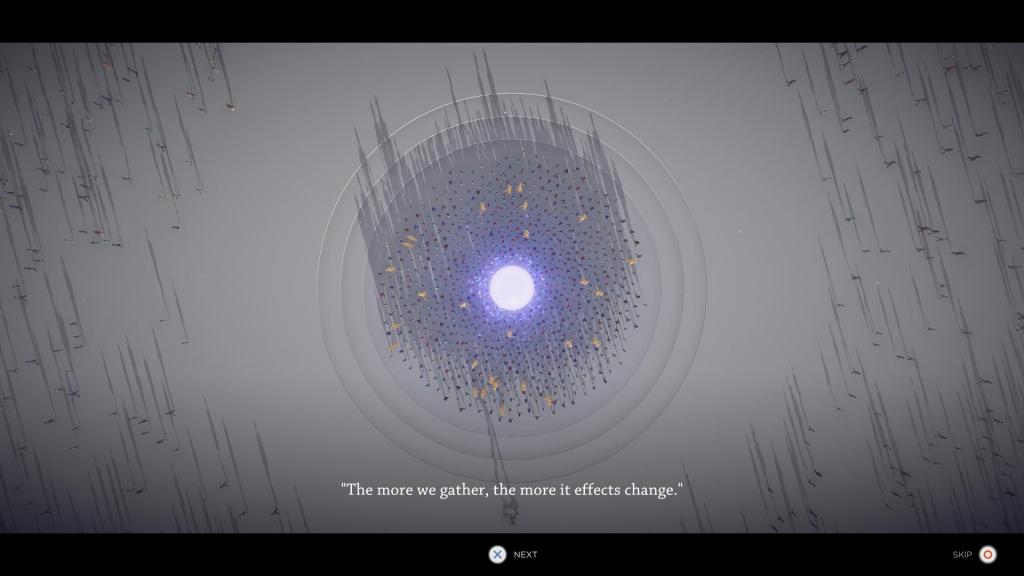 Além disso gostei do estilo gráfico, bastante simples dada a quantidade de personagens presentes ao mesmo tempo no ecrã mas um estilo bastante carismático e satisfatório, especialmente tendo em conta que à medida que progredimos podemos mudar o aspeto das pessoas que guiamos em direção à luz, o que evita que o estilo gráfico estagne.
