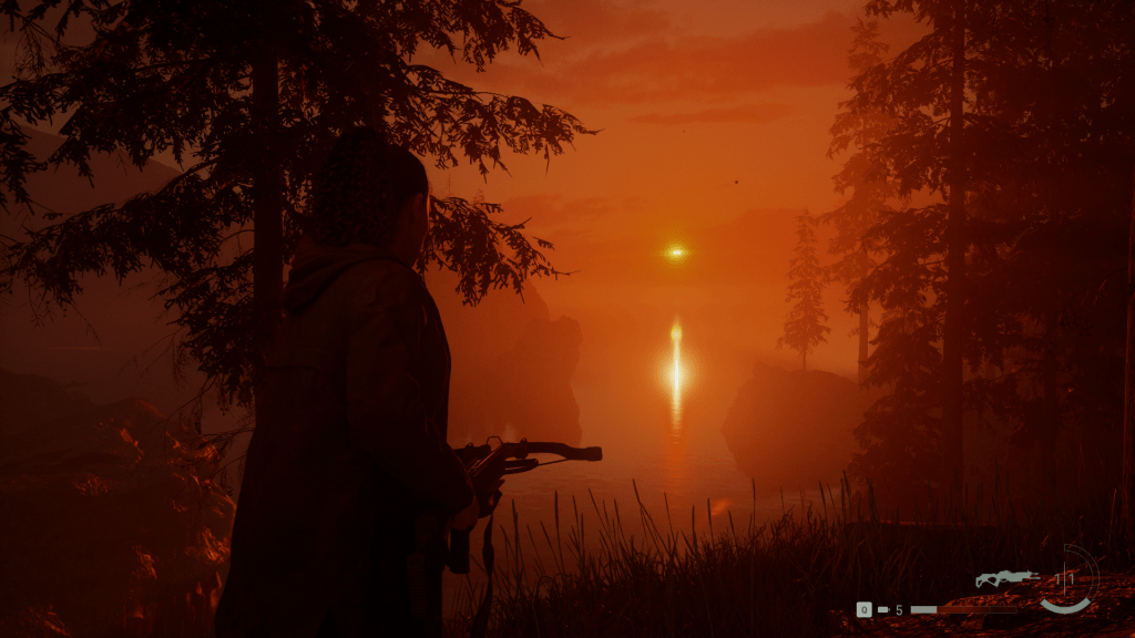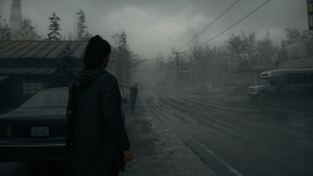 Este jogo puxou pelo meu PC. Já não é a primeira vez que a Remedy me surpreende no departamento visual. O Control foi e ainda é, para mim, um deslumbre visual (sobretudo depois de ter conseguido jogar com ray-tracing ligado este ano), e esta forte direção artística continua presente no seu lançamento mais recente. Bright Falls não é a vila mais bonita do mundo, quando lá chegam com Saga notam o tempo mal humorado, o céu cinzento, a falta de luz e parece que está sempre prestes a chover. Entram na floresta, tão densa que o sol mal consegue penetrar as árvores, e a única forma de combater a escuridão é com luz artificial. No centro, o lago parece devorar os acampamentos e as casas junto à margem. Adoro como, mesmo fora do Dark Place, a escuridão é nosso pior inimigo e Alan Wake II a usa para brincar com a nossa mente: Pequenos movimentos deixam-nos alerta e, por vezes, as sombras são apenas sombras, resultado da nossa lanterna, ou algo mais, pronto a atacar.
