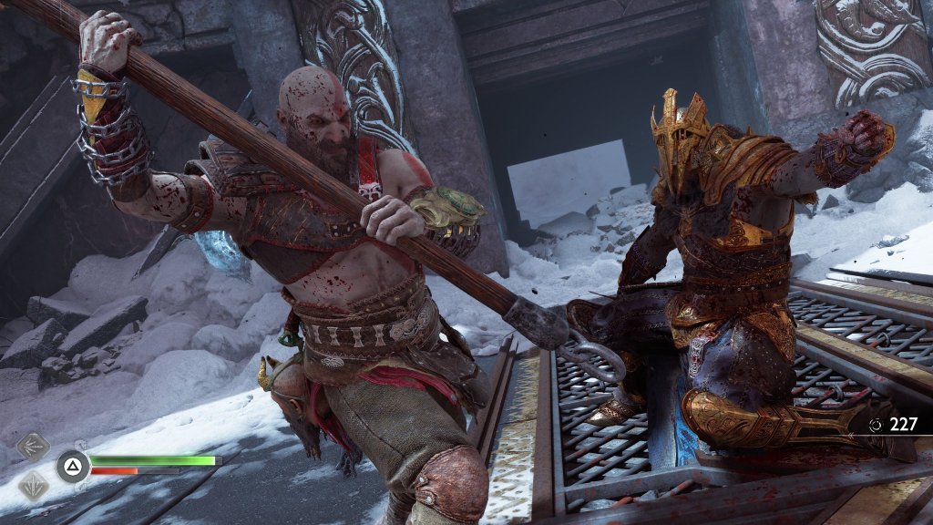 O corte com a saga grega, não é absoluto. O título da caixa é “God of War”, por isso, o combate e os puzzles chegam eventualmente. Mas esses elementos também se modificam com a opção de saltar removida; Kratos, caminha de pés assentes no chão (praticamente). A câmara aproxima-se do protagonista mudando o ritmo de combate. Os ataques têm mais peso quando rasgam a pele e ossos dos adversários, e Kratos não se mexe tão habilmente. Enquanto o jogo perde a intensidade do enredo que determinou a jornada de vingança de Kratos, o combate guarda essa qualidade e eleva-se.