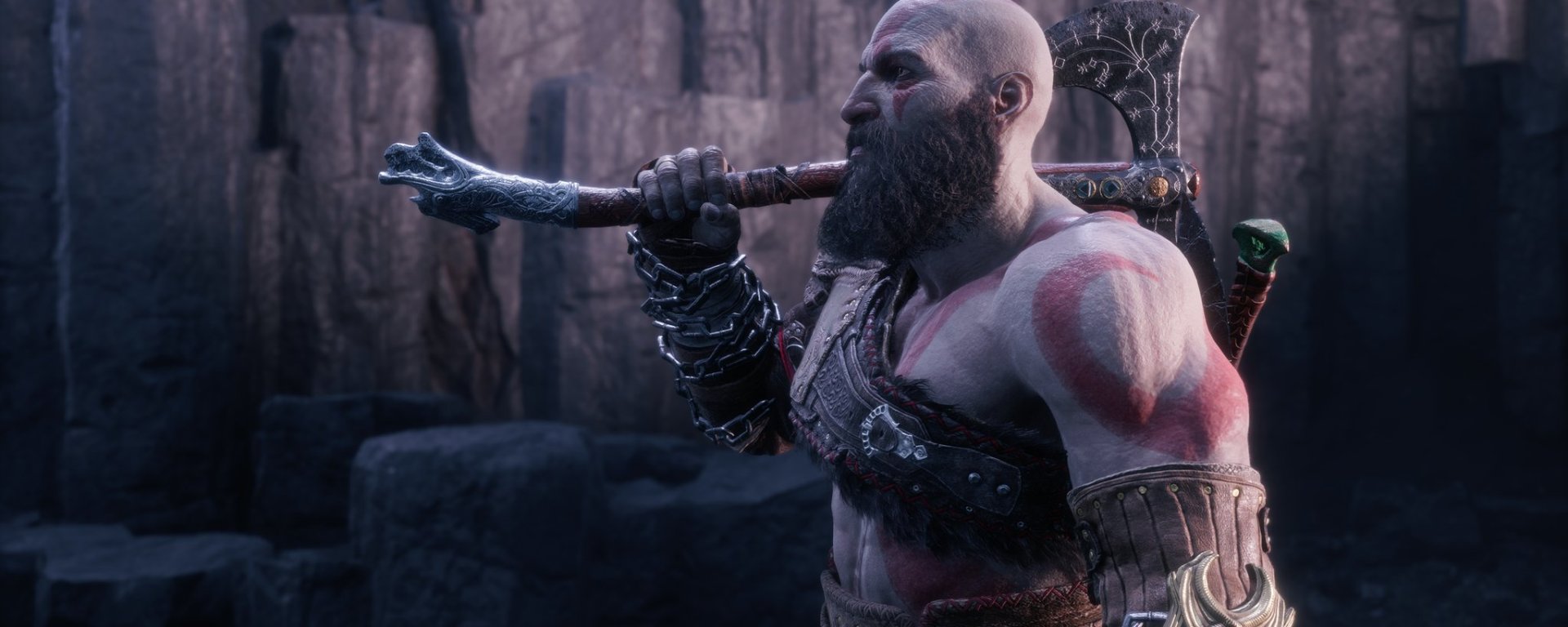 O jogo começa, brevemente, num formato familiar. No menu de jogo, temos Kratos presente, tal como na trilogia original, mas ao iniciar esta história não temos um cliffhanger sobre o futuro, uma narração expositiva ou cortamos para combate depois de uma cutscene. Apenas corta uma árvore2. Temos um Kratos velho, com ligaduras a esconder as marcas das correntes das Blades of Chaos cravadas nos seus braços. Agora carrega um machado. Não vamos lutar com uma Hydra ou confrontar um deus, apenas realizar ritos funerários. Entendemos rapidamente que a fonte dramática não é a mesma; este “novo” princípio não se entrega ao melodrama. Surge uma leveza no tom da história, estranha até então, permitindo momentos cómicos onde Kratos faz de homem sério. É frio, disciplinado e temperamental de uma forma que nos convence que é a mesma pessoa; e ainda tem lições por aprender. É um pai que ama à sua maneira, encurralado pelo seu passado e receoso em falhar. O enredo vai voltar a enrolar Kratos na trama desta nova mitologia, mas há uma nova preocupação nas personagens. É uma jornada íntima, de pai e filho, do passado e presente.