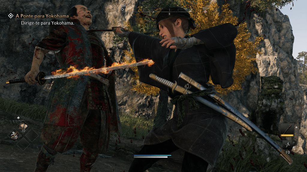 Tecnicamente o jogo é bastante apelativo visualmente, possuindo uma direção artística excelente, que embora não alcance os níveis de um Ghost of Tsushima adorei as paisagens desta representação do Japão do século XIX. Além disso o jogo possui os 2 modos visuais distintos do costume, Qualidade (4K a 30fps) e Performance (1080p a 60fps), assim como um modo Ray Tracing que tanto pude apurar é igual ao Qualidade apenas com a adição de Ray Tracing, pessoalmente joguei no modo Performance e mesmo assim o desempenho não era perfeito, pelo que é daqueles jogos onde nenhum modo é ideal, mas recomendaria o modo performance para quem quer a experiência mais próxima de 60fps.
