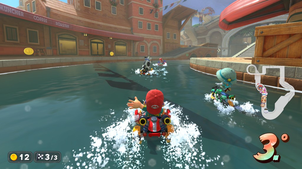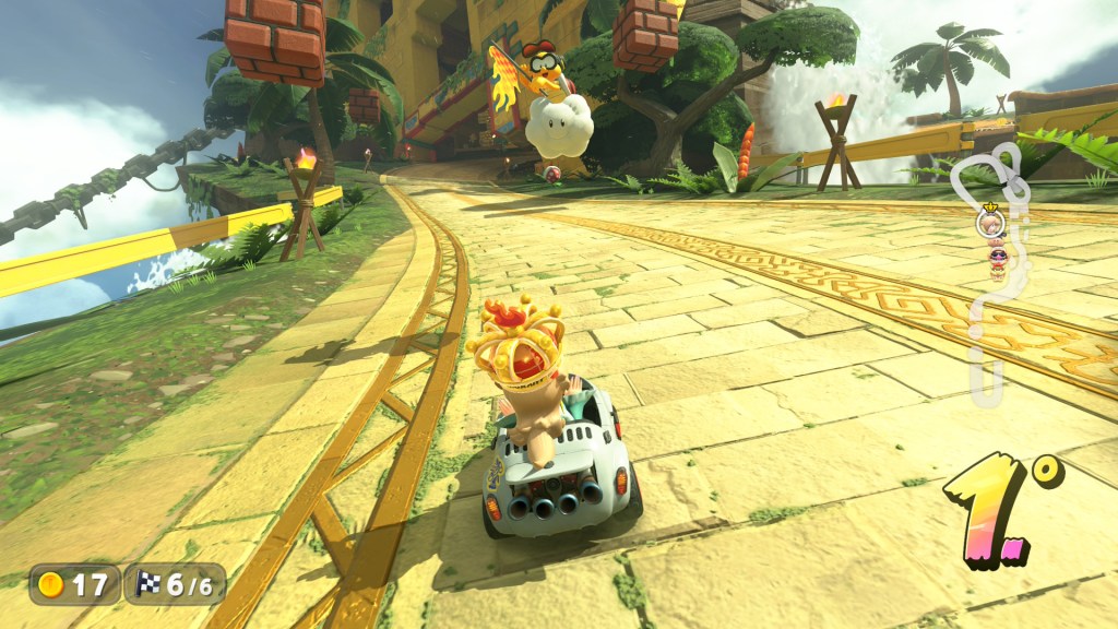 No entanto este aumento do número de corredores é uma faca de dois gumes, tanto online como offline, pois embora adicione um caos divertido e uma dificuldade acrescida dado o número de itens a voar no ecrã, a realidade é que muitas vezes dei por mim perdido na pista porque muitos corredores se amontoaram e mandaram itens em simultâneo e o resultado foi uma confusão visual em que já nem via bem onde estava na pista, sinto que poderiam facilmente adicionar uma opção clássica de 8 jogadores no futuro próximo, certamente terão tempo para isso.