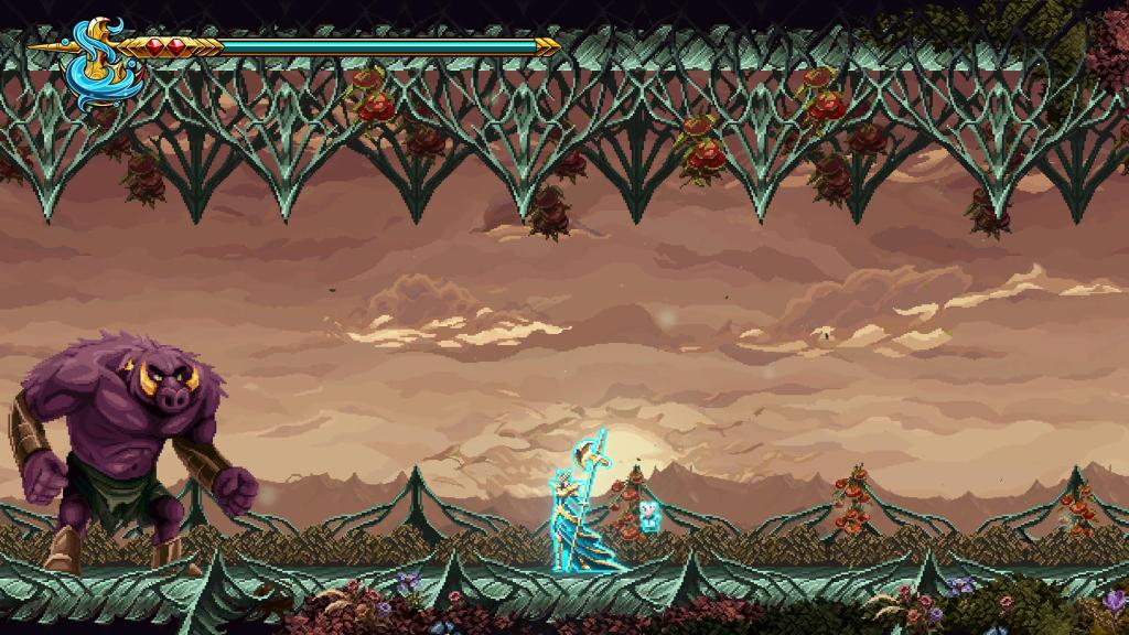 Durante esta aventura existem também diversos bosses por enfrentar, e muitos deles são lutas concetualmente engraçadas e com mecânicas interessantes, porém senti que eram algo “esponjas” e as lutas demoravam demasiado tempo em casos, algo ainda mais acentuado pelo facto do jogo sofrer de ligeiros problemas de colisão então muitas vezes certos ataques de Europa parece que vão colidir com o inimigo mas não há feedback do mesmo.