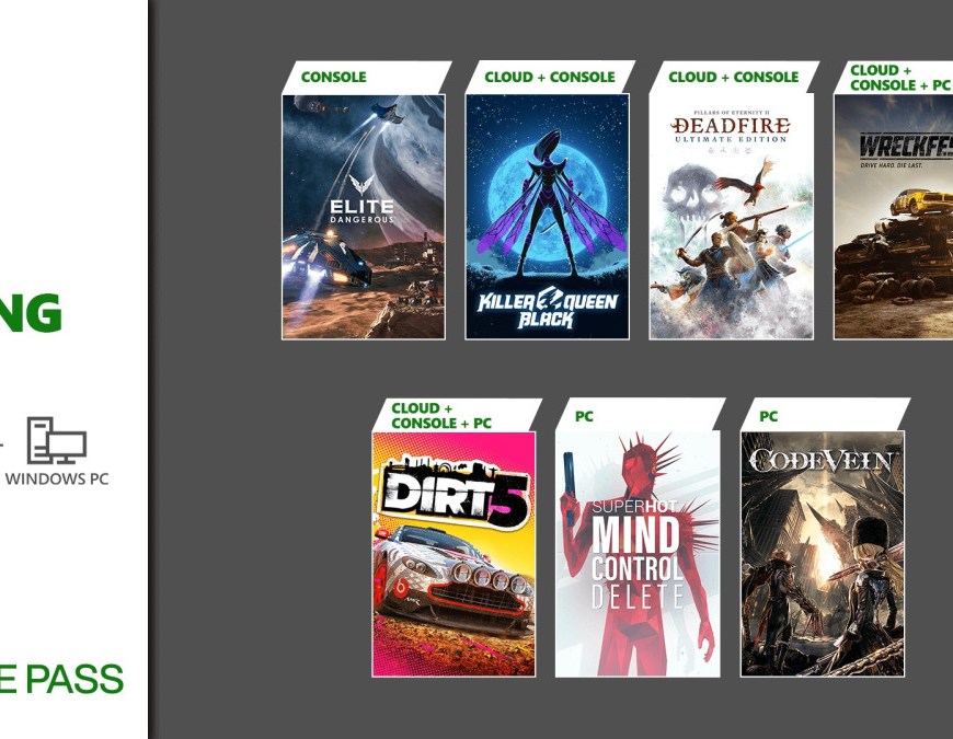 Foram anunciados os próximos títulos que farão parte da colecção do Xbox Game Pass em Fevereiro: 18 de Fevereiro: Code Vein – PC Pillars of Eternity 2: Deadfire – Ultimate Edition – Consola e Cloud Wreckfest – PC, Consola e Cloud 23 de Fevereiro: Killer Queen Black – Consola e Cloud 25 de Fevereiro: Dirt 5 – PC, Consola e Cloud Elite Dangerous – Consola Superhot: Mind Control Delete – PC … Continue reading Dirt 5, Code Vein, Pillars of Eternity 2 e mais no Xbox Game Pass este mês
